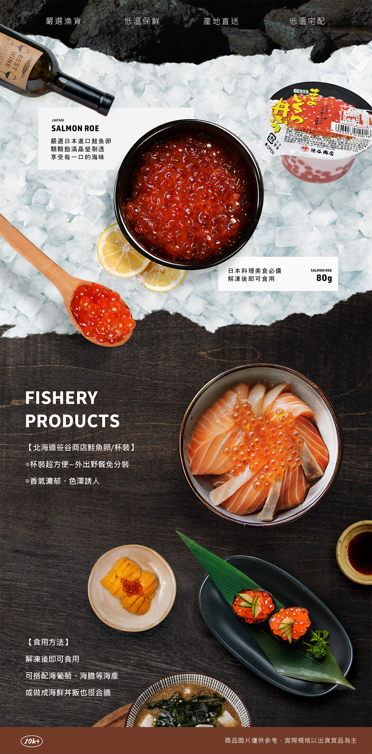 每口都是鮮甜海味 頂級的滋味 想吃即刻享受 滿足您對鮭魚卵的想像